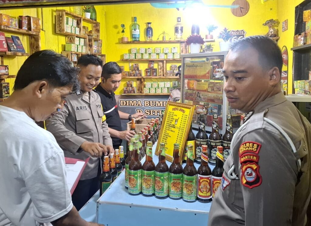 Selama lima hari pelaksanaan operasi, petugas berhasil mengamankan ratusan botol minuman keras (miras) berbagai jenis dan merek dari sejumlah warung kelontongan dan kios jamu di wilayah hukum Polres Serang.