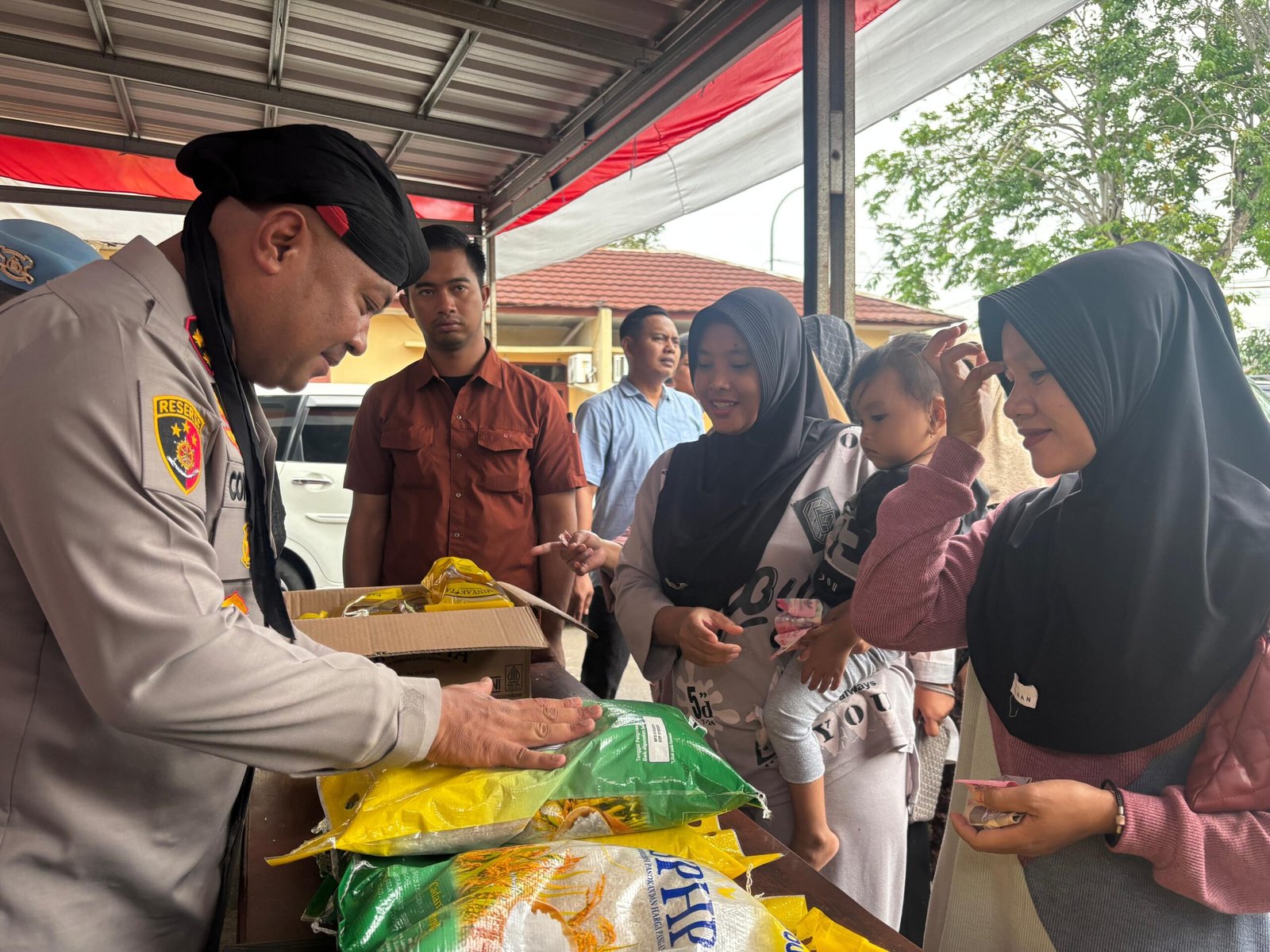 Kegiatan yang berlangsung sejak pukul 09.00 hingga 12.00 WIB ini berhasil menyalurkan 2 ton beras SPHP kemasan 5 kg serta 600 kantong minyak goreng merek MinyaKita kemasan 1 liter.
