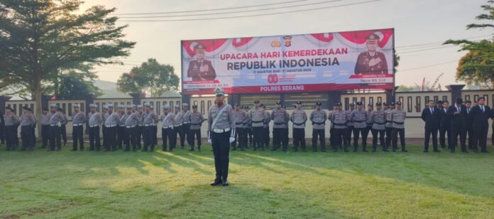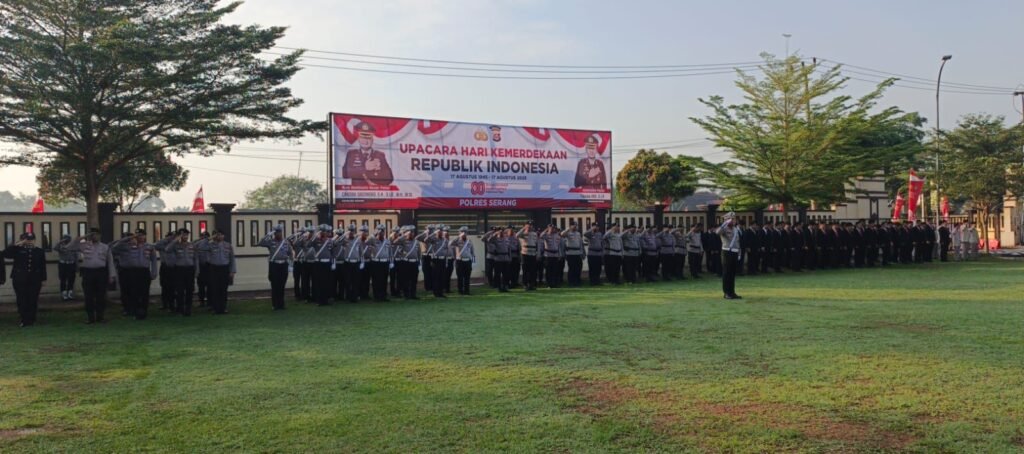 Global Rise TV (Serang Banten)– Kabag SDM Kompol Agus Supriyadi memimpin upacara bendera HUT Kemerdekaan RI ke-80 yang bertemakan “bersatu, berdaulat, rakyat sejahtera, indonesia maju” di halaman Mapolres Serang, Minggu (17/8/2025).