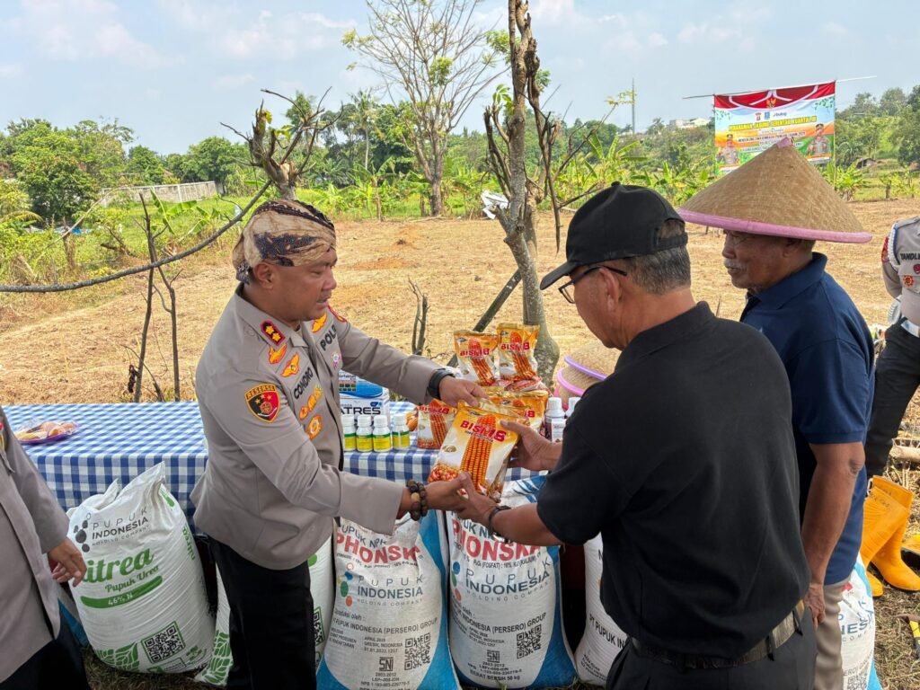 Dalam kegiatan penanaman jagung, Kapolres berkesempatan memberikan bantuan kepada Kelompok Tani (Poktan) Maju Bersama 1, berupa bibit jagung jenis BISI sebanyak 30 kilogram, pupuk urea dan NPK masing-masing 250 kilogram, herbisida reaktif dan brantaxon masing-masing 10 botol, insektisida athenz  15 botol serta alat semprot 1 unit.