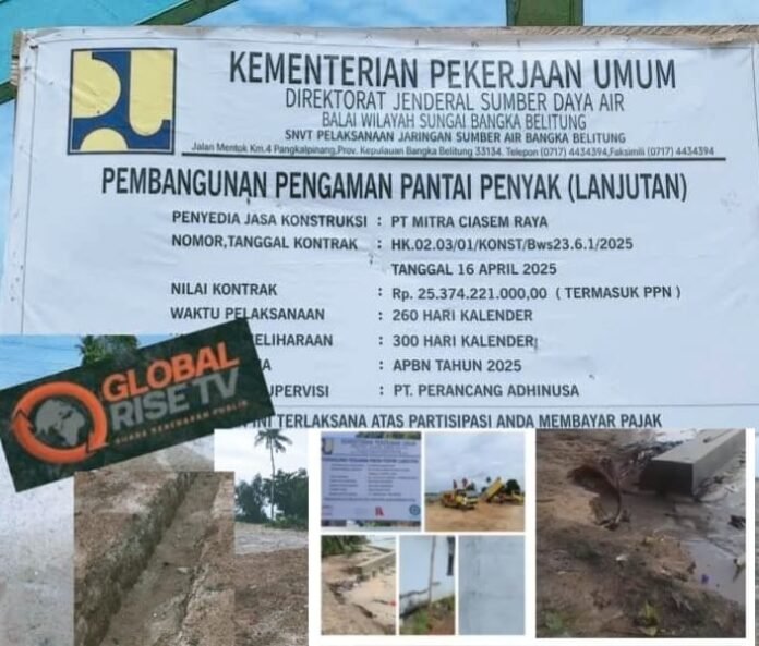 Proyek penataan kawasan Pantai Penyak kini disorot tajam publik. Alih-alih menjadi simbol kemajuan pariwisata, proyek tersebut justru disebut warga sebagai “diduga proyek siluman” bekerja di lapangan, namun nyaris tanpa jejak transparansi di hadapan publik.