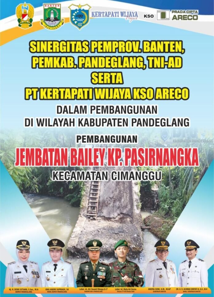 Global Rise TV (Pandeglang, Banten)-PT Kertapati Wijaya KSO Areco selaku mitra kemenhan untuk pembangunan YTP 842/Badak Sakti,menyatakan komitmennya untuk membantu Pemerintah Daerah dan Pemerintah Provinsi Banten dalam pembangunan Jembatan Bailey Pasir Nangka yang berlokasi di Desa Kramatjaya, Kecamatan Cimanggu, Kabupaten Pandeglang.