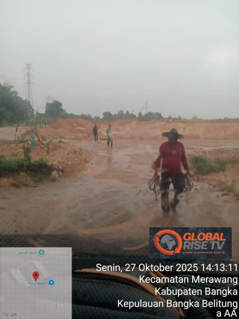Global Rise TV (Sungailiat)-Selasa 28 Oktober 2025 — Setelah temuan awal diungkap media soal tambang timah milik Aliong, warga Merawang, yang beroperasi dekat sumber air PDAM tanpa penerapan Keselamatan dan Kesehatan Kerja (K3), kini sorotan publik beralih ke pihak PT Timah Tbk selaku perusahaan pemegang izin utama dan pemberi mandat operasi kepada para mitranya.