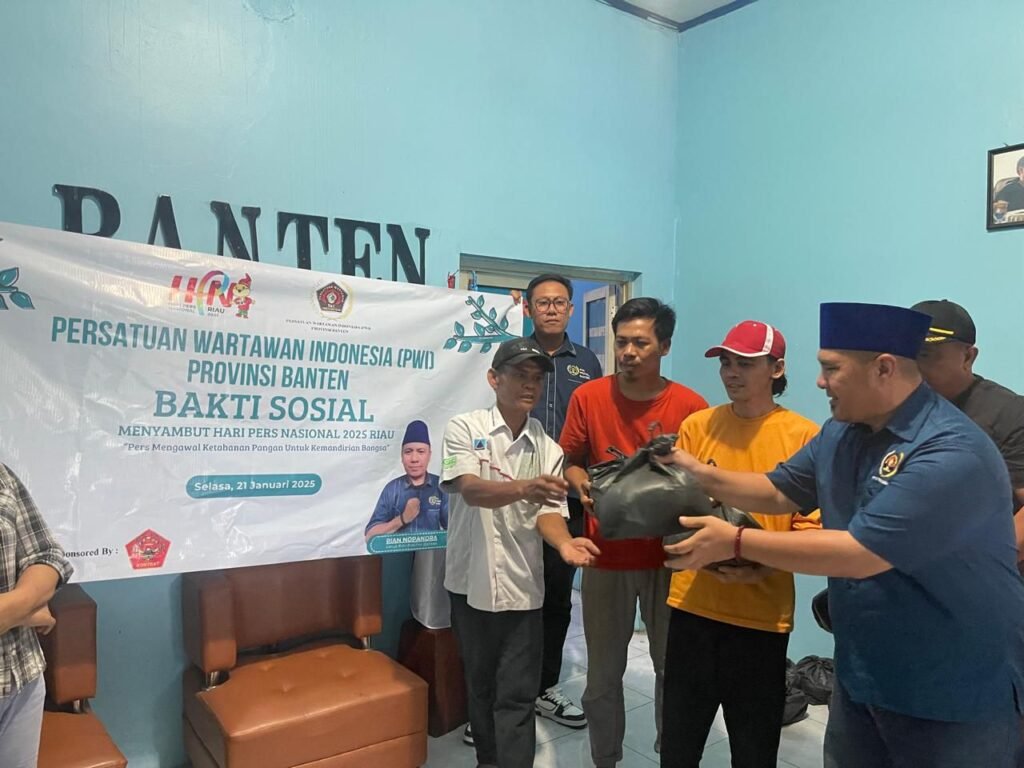 Global Rise TV (SERANG)- Dalam rangka menyambut Hari Pers Nasional (HPN) 2025 di Provinsi Riau, Persatuan Wartawan Indonesia (PWI) Banten menggelar Bakri Sosial (Baksos) untuk warga sekitar Sekretariat PWI Banten, Jalan Jenderal Sudirman No 25, Kota Serang, turut hadir Ketua Dewan Penasehat PWI Banten Lesman Bangun, Sekretaris PWI Banten Fahdi Khalid, Wakil Ketua Bidang Organisasi PWI Banten Teguh Akbar Idham, Wakil Ketua Bidang Kerjasama PWI Banten Adytia Warman, Ketua PWI Cilegon Ahmad Fauzi Chan , Ketua PWI Kabupaten Tangerang Seli, Ketua PWI Tangsel Edi Riyadi, Ketua PWI Kota Serang Iman Esa Firmansyah, Sekretaris PWI Kabupaten Serang Angga Aprilia Siswanto, Wakil Ketua PWI Pandeglang Juanda, Ketua SMSI Kota Serang Ayu Amalia, Ketua SMSI Kabupaten Serang Wisnu Anggora
