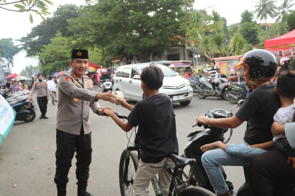 Ramadhan Berkah, Kapolres Lebak Bagikan Takjil ke Warga di Alun-alun Rangkasbitung