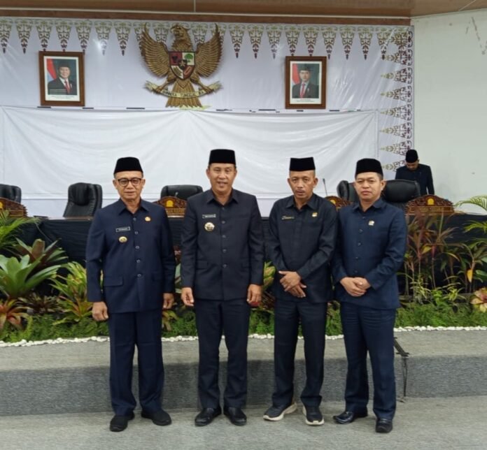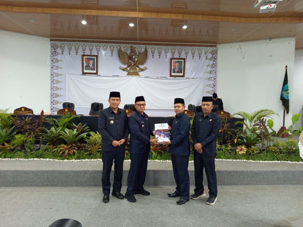 Ketua DPRD, Jumadi, S.IP., dalam sambutannya Mengatakan rapat, paripurna hari ini dilaksanakan dalam rangka memenuhi ketentuan dalam pasal (71) ayat (2), undang-undang nomor (23) tahun, 2014 tentang pemerintahan Daerah beserta, perubahan dan pasal (21) permendagri nomor (19) tahun 2024, tentang peraturan pelaksanaan peraturan pemerintah nomor (13) tahun 2019, tentang laporan dan evaluasi penyelenggaraan, pemerintahan daerah, menyatakan Bahwa salah satu kewajiban Bupati adalah Menyampaikan, laporan keterangan pertanggung jawaban (LKPJ) Bupati dalam rapat paripurna dewan, perwakilan rakyat daerah, dilakukan (1) satu kali dalam (1) satu tahun, paling lambat (3) tiga Bulan setelah, tahun anggaran Berakhir,