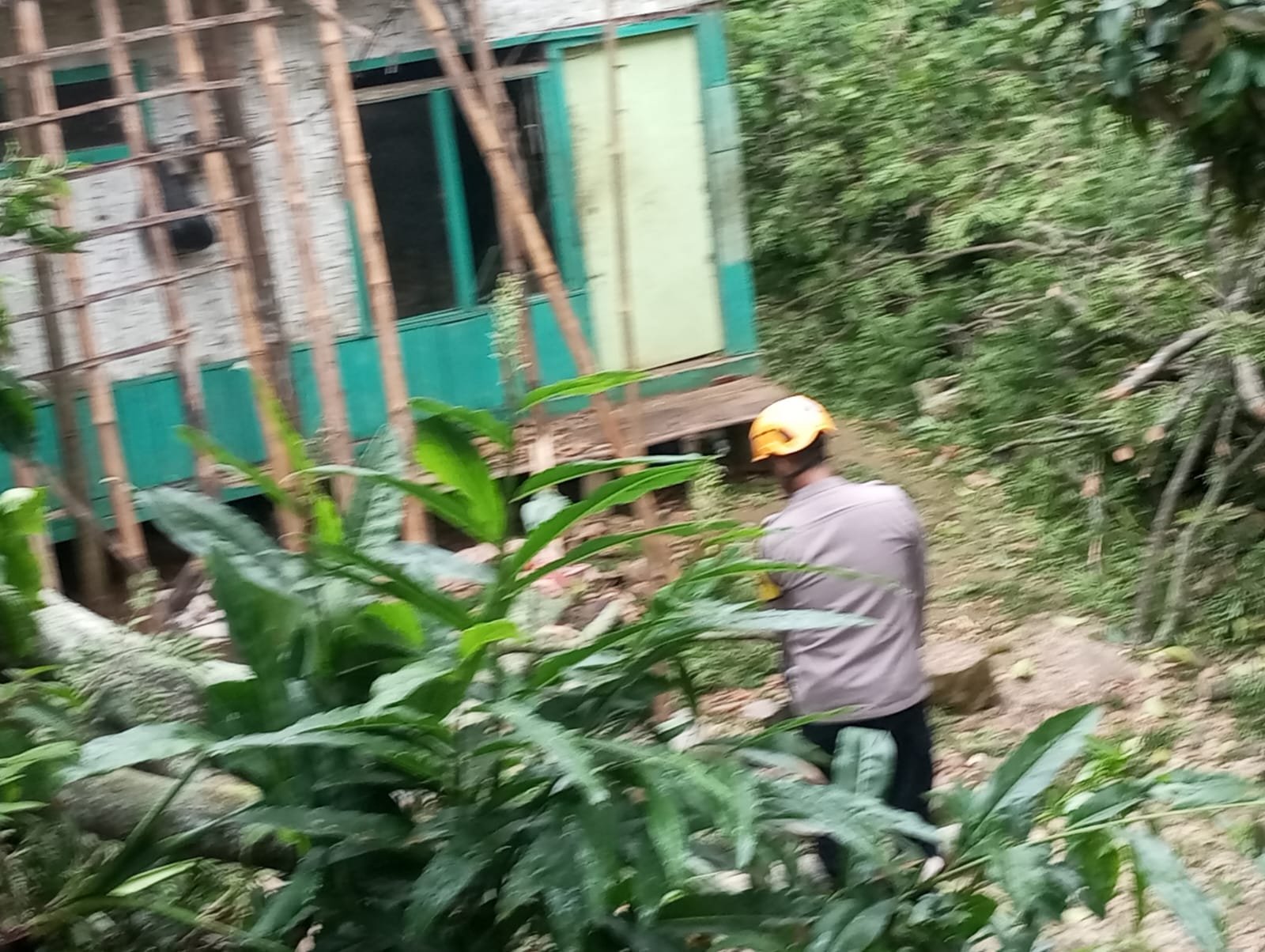 Menindaklanjuti laporan masyarakat, personel Polsek Wanayasa, Polres Purwakarta dengan sigap melakukan pengecekan TKP, pengamanan area, dan evakuasi pohon tumbang.