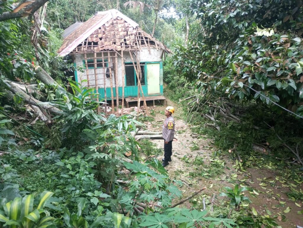Pohon tumbang itu menimpa sebuah rumah milik Rubiah (75), beruntungnya tak ada korban jiwa dalam peristiwa itu.