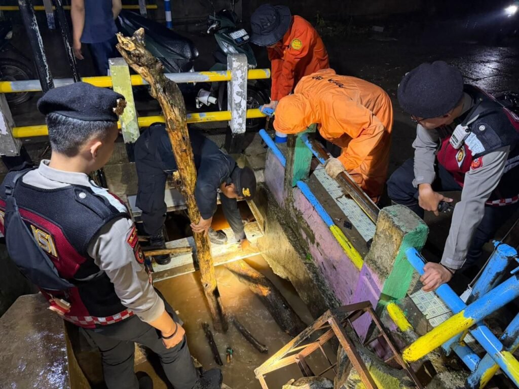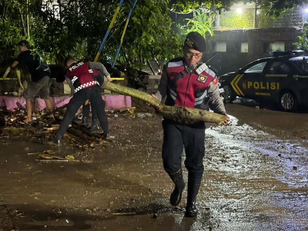 Dipimpin langsung Kasat Samapta, AKP Erwan Kusbiyantoro, anggota bergerak untuk memastikan keselamatan masyarakat serta meminimalisir dampak yang ditimbulkan dan membersihkan sampah yang terbawa banjir.