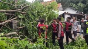 “Tindakan yang diambil petugas memotong dahan dan ranting menggunakan gergaji senso, diamankan ke pinggir jalan supaya tidak menghalangi kendaraan yang melintas,” Jelas Yuga.