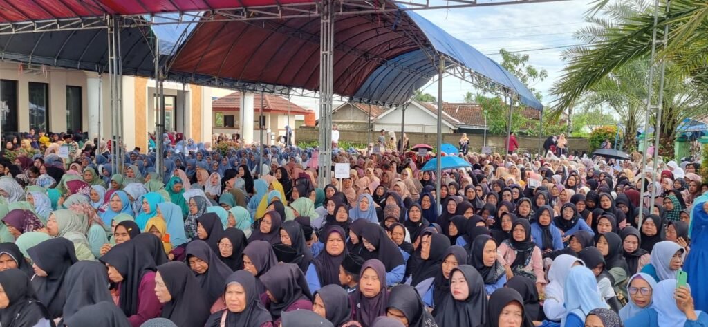 Global Rise (Pandeglang-Banten)-Kegiatan pengajian rutin tingkat Kecamatan Cikeusik berlangsung khidmat dan meriah di halaman Masjid Besar Attaqwa, Desa Cikeusik, Kabupaten Pandeglang, Provinsi Banten. Acara yang digelar pada Sabtu (25/10) tersebut dihadiri oleh kurang lebih 4.500 jemaah dari 14 desa yang ada di wilayah Kecamatan Cikeusik, Sabtu : 25 Oktober 2025.