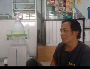Robot dari bahan botol minuman plastik terbuang, takjub bisa melayani pembeli di Warung Nasi Parasmanan “Mustika”.