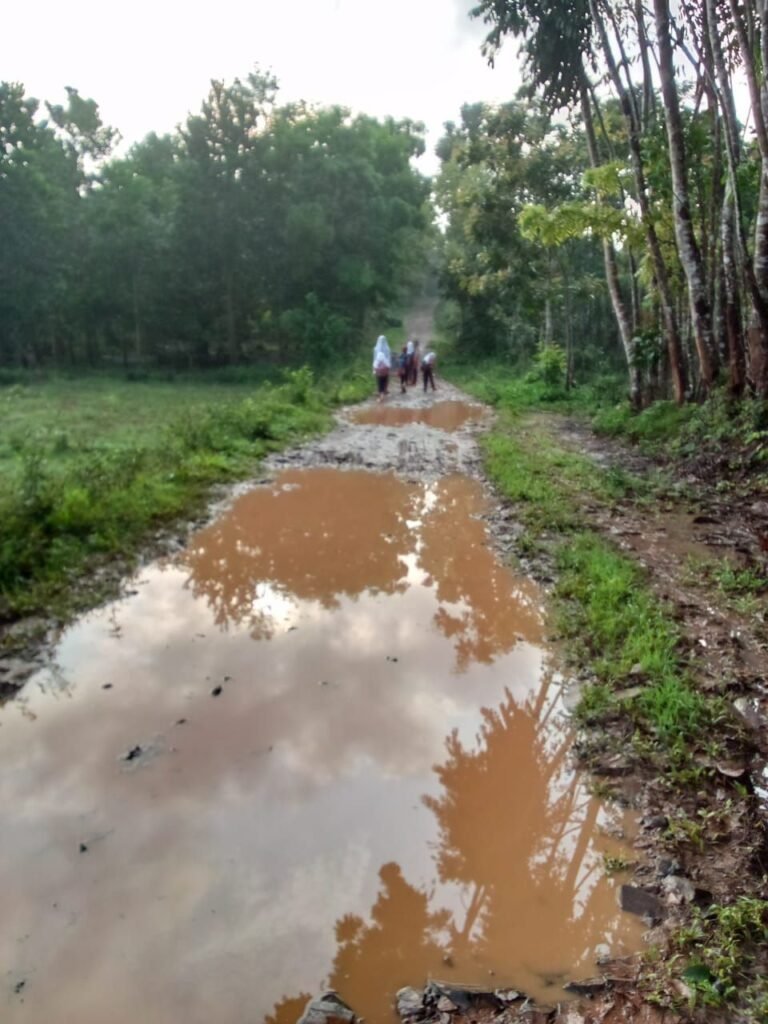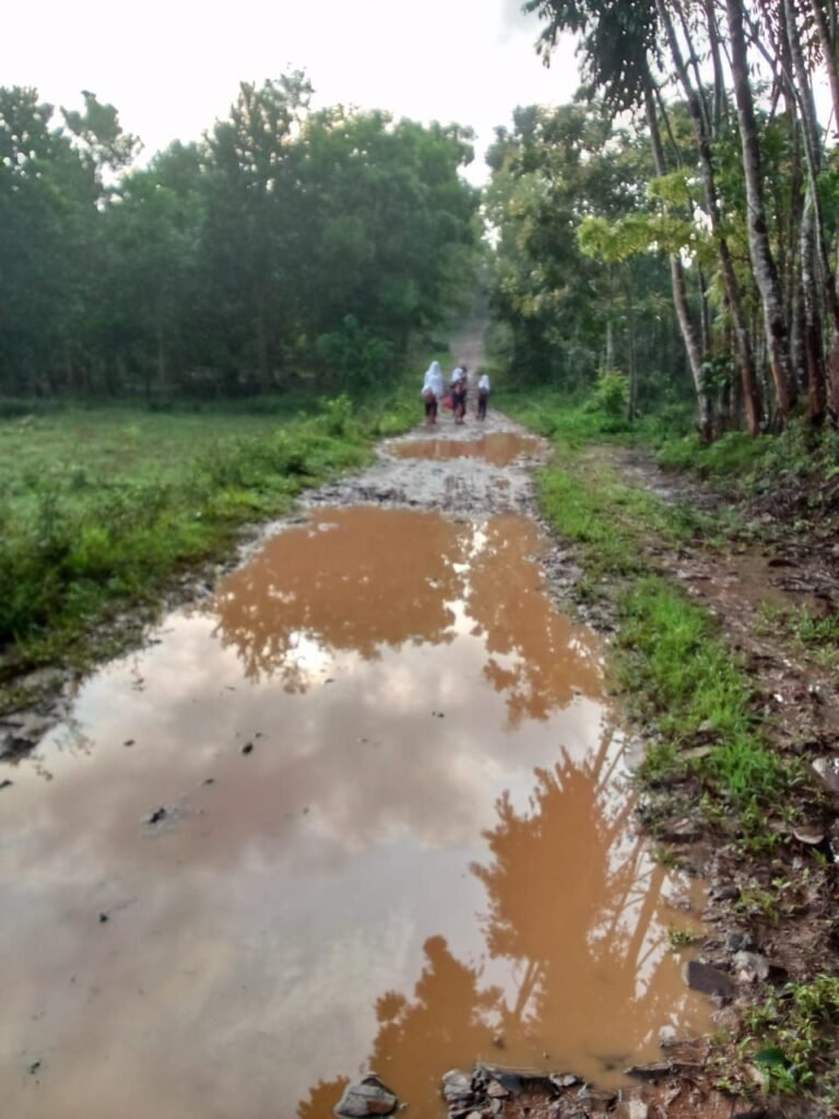 Jalan rusak selalu menjadi sorotan masyarakat karena kondisinya mengganggu pengguna jalan. terutama untuk anak sekolah setiap hari melintasi jalan tersebut.