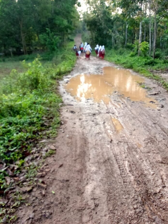 Jalan rusak selalu menjadi sorotan masyarakat karena kondisinya mengganggu pengguna jalan. terutama untuk anak sekolah setiap hari melintasi jalan tersebut.