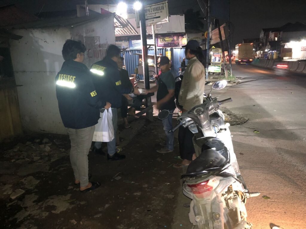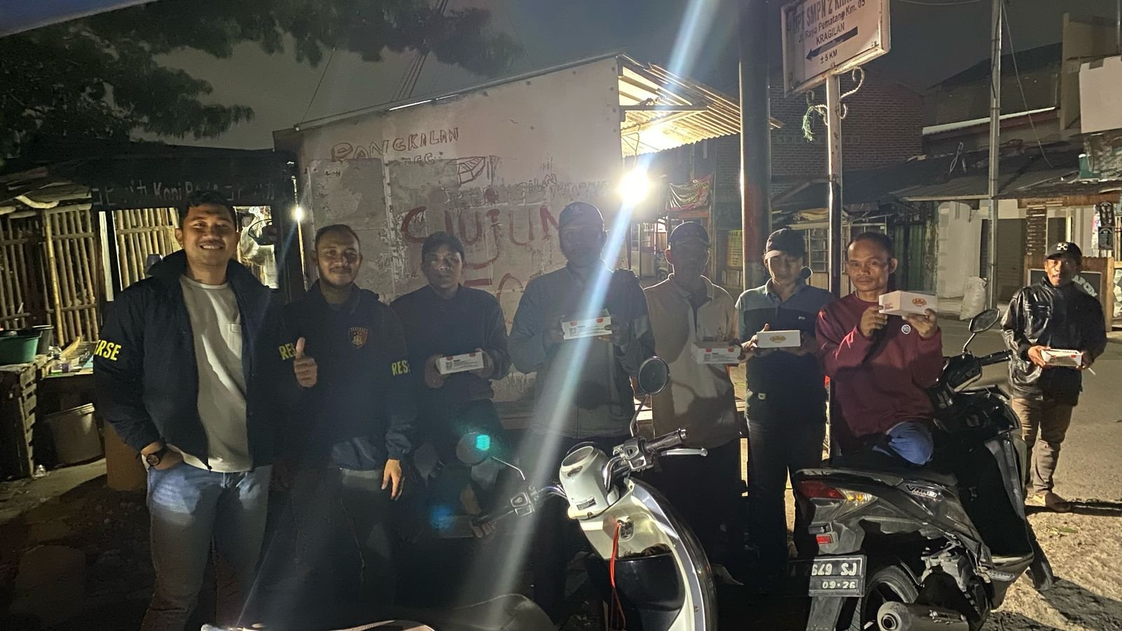 Bersamaan dengan itu, petugas juga membagikan paket makanan santap sahur bagi masyarakat yang masih menjalankan aktifitas malam.