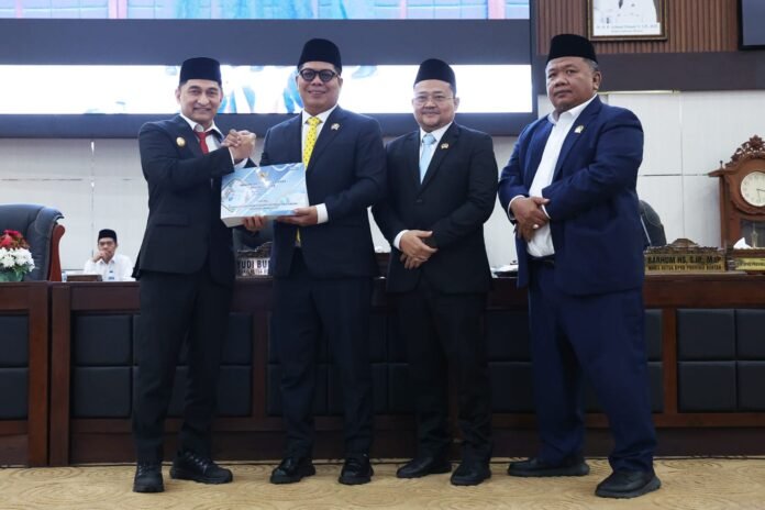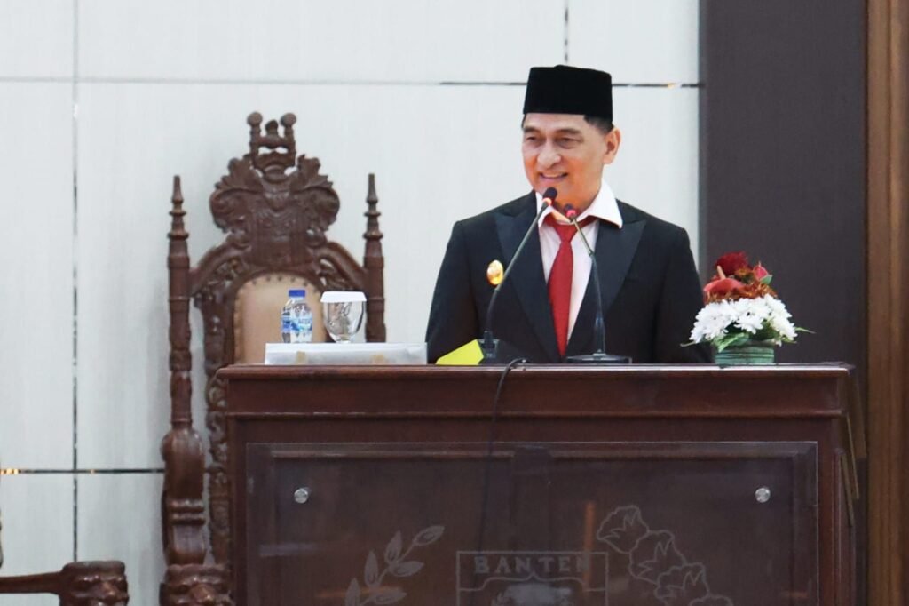 Global Rise TV (Banten)–Wakil Gubernur (Wagub) Banten A Dimyati Natakusumah menyampaikan Nota Pengantar Rancangan Peraturan Daerah (Raperda) Perubahan Anggaran Pendapatan Belanja Daerah Provinsi Banten Tahun Anggaran 2025 pada Rapat Paripurna DPRD Provinsi Banten di Gedung DPRD Provinsi Banten KP3B Curug, Kota Serang, Jumat (15/8/2025).