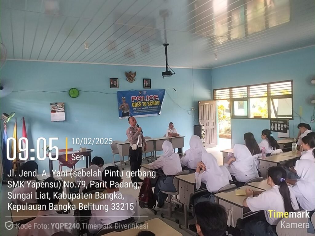 Global Rise TV (Bangka Sungailiat) -Satuan Lalu Lintas (Satlantas) Polres Bangka menggelar kegiatan sosialisasi Police Goes to School. dan Operasi Keselamatan Menumbing 2025 di SMPN (4) Sungailiat, Senin (10/02/2025).