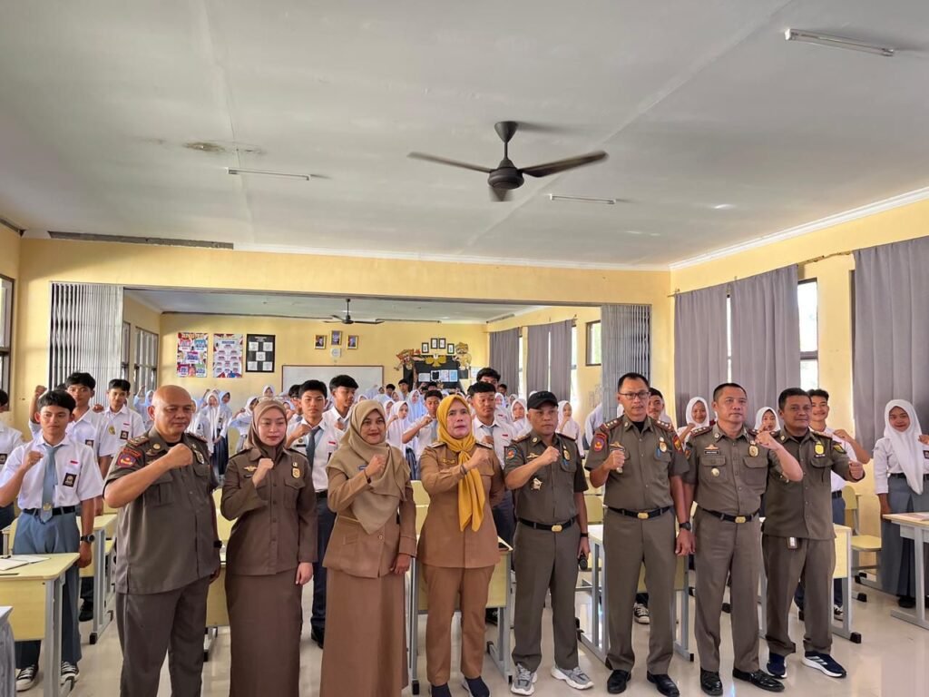 (Sukabumi) — Satuan Polisi Pamong Praja (Satpol PP) Kabupaten Sukabumi melaksanakan kegiatan sosialisasi peraturan daerah melalui program Satpol PP Goes to School di Aula SMA Negeri 1 Kalibunder, Kecamatan Kalibunder, Kabupaten Sukabumi, Senin (13 April 2026). Kegiatan ini bertujuan memberikan pemahaman kepada para pelajar mengenai pentingnya menaati Perda dan Perkada serta membangun perilaku disiplin sejak usia sekolah.