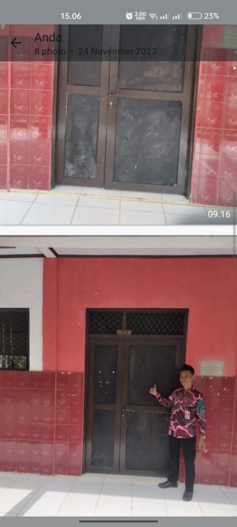 pemanfaatan sisa anggaran 2024 di sdn leuwibalang 1 di sekolah definitif saya dengan merenovasi pintu yang semula rusak kini selesai di perbaiki.