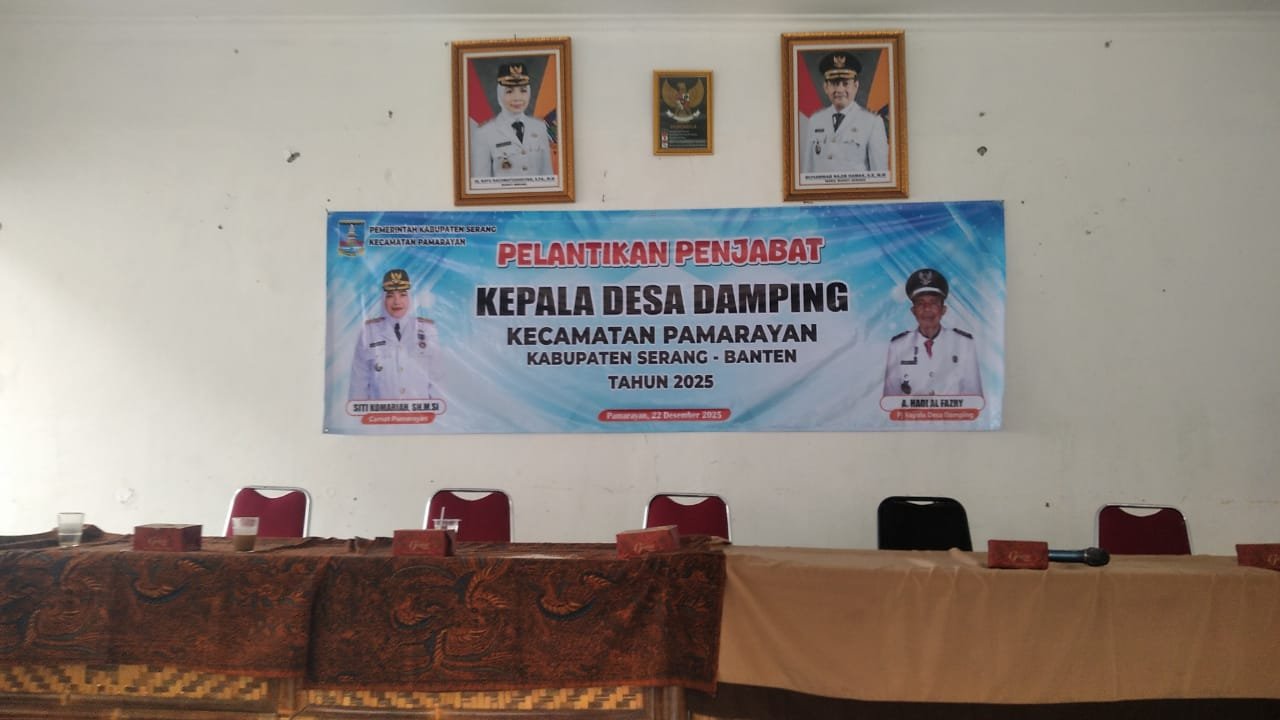 Pejabat Kepala Desa Damping usai di ganti, Dulunya Kepala Desa Pj Damping Darmin Di ganti dengan A. Hadi Al Fazry Pj damping, untuk mengemban masyarakat Damping yang lebih baik dan bersinergi dengan Kepala Desa yang baru. Acara ini di hadiri Kepala Desa pj Damping Darmin. Camat Pamarayan Siti Komariah, S.H., M.Si sekmat Pamarayan Kepala Desa se-Kecamatan Pamarayan. Stap se-Kecamatan Pamarayan.kapolsek Pamarayan. Danramil Pamarayan.kepala KUA Pamarayan. Ketua Apdesi Pamarayan.ketua karang taruna. Ketua Bpd.Muspika sekecamatan Pamarayan.Rt/rw dan yang lainya. Acara ini di aula Kecamatan Pamarayan. Kabupaten Serang Banten. 22/12/2025