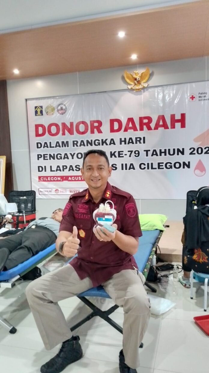 Global Rise TV (CILEGON)-Lembaga Pemasyarakatan (Lapas) Kelas IIA Cilegon mengadakan kegiatan donor darah dalam rangka memperingati Hari Pengayoman ke-79. Kegiatan ini dilaksanakan di Aula Gedung 1 Lapas Cilegon dengan bekerja sama dengan Palang Merah Indonesia (PMI) Kota Cilegon. Sabtu (10/08).