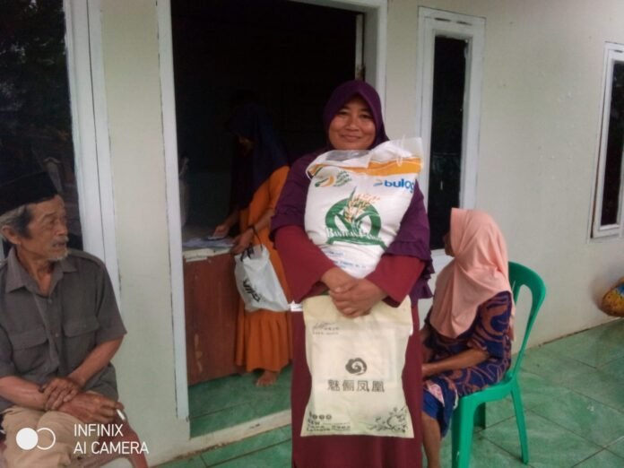 Senyum Bahagia Warga Desa Waringin Kurung Mendapat Bantuan Beras 10 Kg.