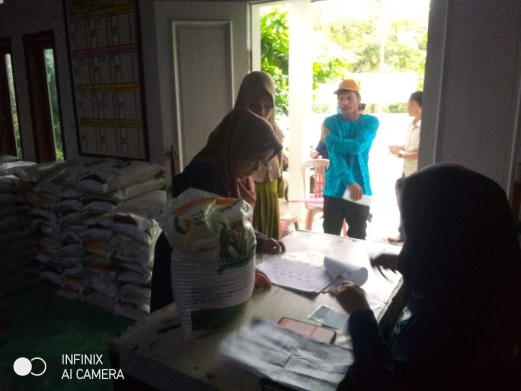 Global Rise TV (Pandeglang)-Pemerintah desa Waringin kurung, kecamatan Cimanggu kabupaten Pandeglang menyalurkan bantuan pangan (BP) beras 10 kg kepada 186  masyarakat,proses penyaluran bantuan pangan tersebut diaula kantor desa Waringin kurung.