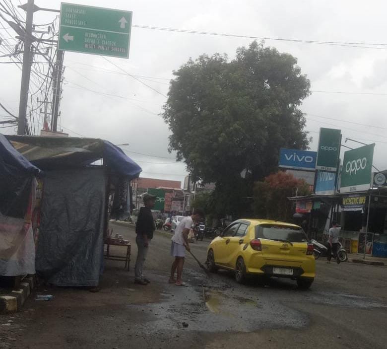 Global Rise TV (Lebak Banten)-Ada salah satu pedagang kaki lima menunjukan kepedulian nya terhadap pengguna jalan yang saat ini kondisi jalan tersebut berlubang dan di genangi air dan banyak pengguna jalan tersebut sering terjebak di kira tidak berlubang ternyata lubang yang sangat dalam oleh oleh karna itu kami para pedagang kaki lima dan kami harap kepada pemerintahan DPUPR kabupaten Lebak agar segera memperbaiki jalan yang rusak tepatnya di alun alun malingping biar kami pengguna kendaraan Roda 2 maupun Roda 4 bisa berjalan lancar dan tidak menimbulkan kecelakaan maupun serpihan air yang terlindas oleh kendaraan yang lewat tersebut, dan jangan sampe menimbulkan laka jumat: 7-03-2025.