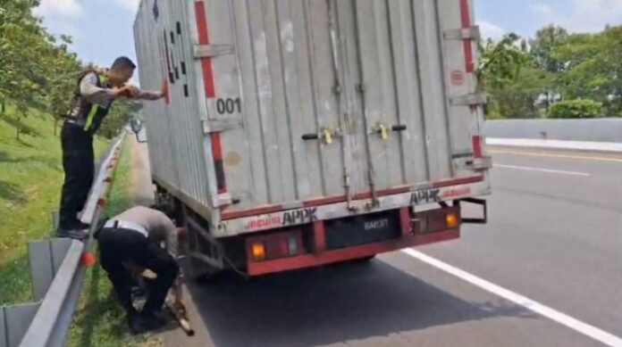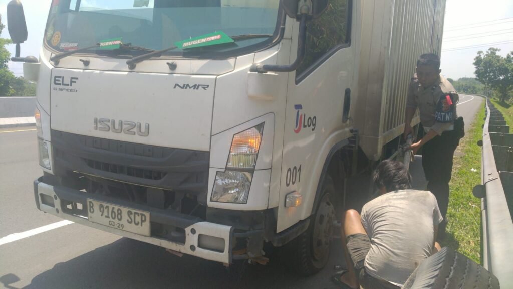 Global Rise TV (Purwakarta) – Kesigapan personel Satlantas Polres Purwakarta kembali terlihat saat membantu pengemudi kendaraan logistik yang mengalami kendala di Tol Cipali. Sebuah kendaraan box pengangkut paket logistik dengan nomor polisi B 9168 SCP yang melaju dari arah Tangerang menuju Solo mengalami pecah ban depan sebelah kiri saat melintas di KM 80.200 Jalur A Tol Cipali.