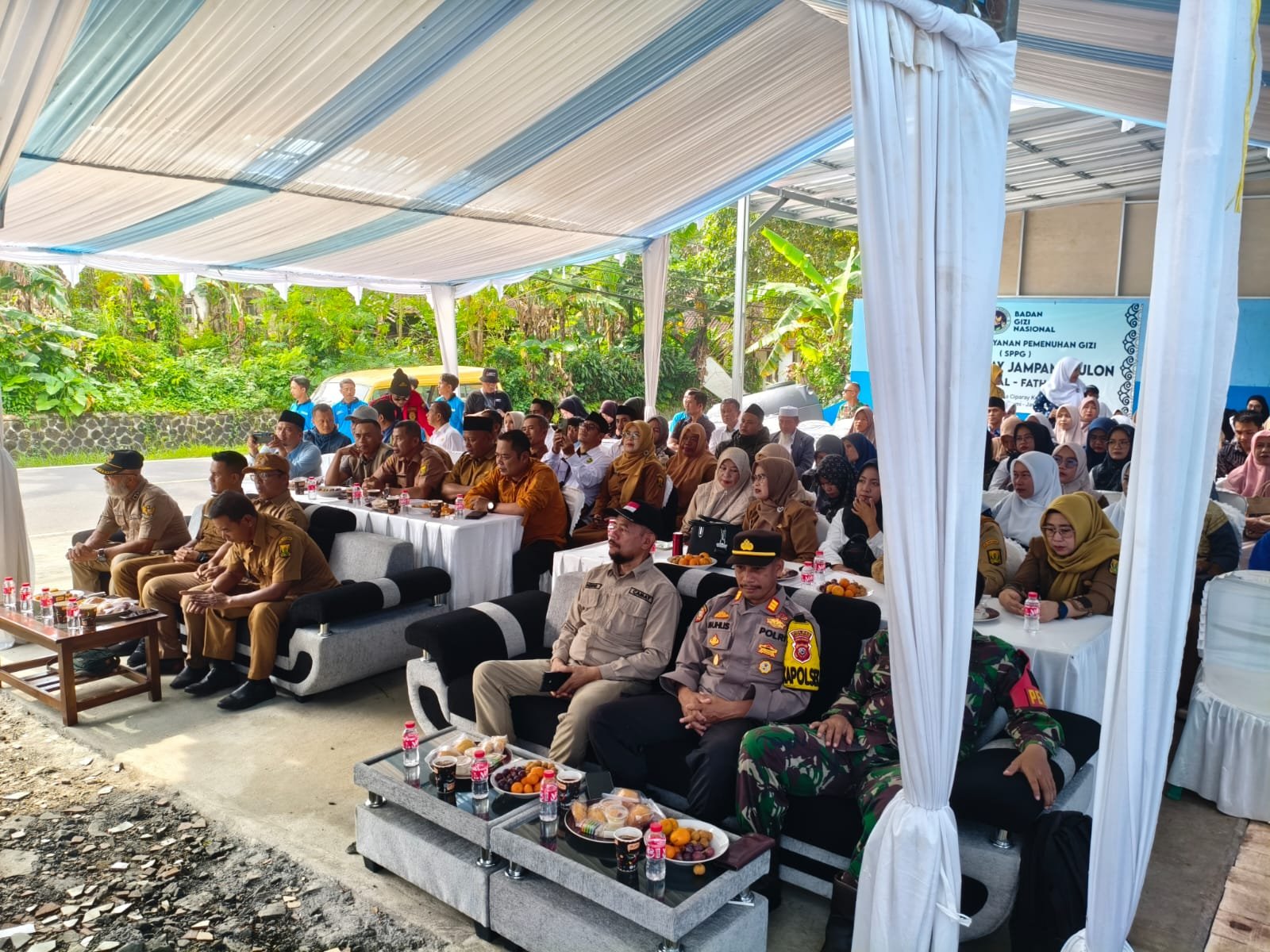 ‎Kegiatan tersebut dilaksanakan dalam bentuk monitoring sekaligus peresmian operasional SPPG dan dihadiri oleh sekitar 75 orang, terdiri dari unsur Forkopimcam, instansi terkait, tenaga kesehatan, tokoh pendidikan, tokoh agama, tokoh masyarakat, serta para tamu undangan.