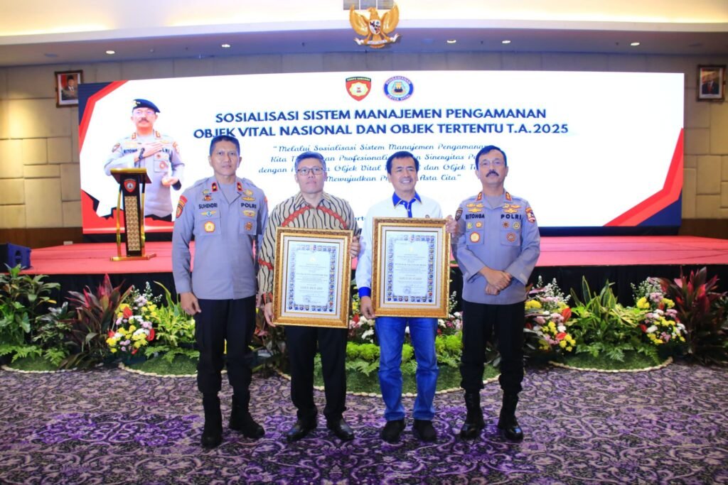 Global Rise TV (Jakarta) – Sukses Terapkan Sistem Manajemen Pengamanan (SMP) dua pengelola obvitnas PT Cikarang Listrindo Tbk dan PT Pupuk iskandar muda di ganjar sertifikat, sertifikat diserahkan langsung oleh Irjen Pol Drs. M.H. Ritonga sebagai apresiasi dari Kapolri Jenderal Listyo Sigit Prabowo yang di serahkan Melalui Kakorsabhara Baharkam Polri, penyerahan digelar Hotel Royal Palm, Jakarta Barat, Rabu 18 Juni 2025.