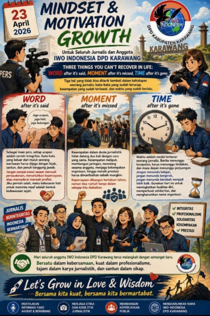 Melalui semangat Mindset & Motivation Growth, saya mengajak seluruh anggota Ikatan Wartawan Online Indonesia DPD Kabupaten Karawang untuk terus bertumbuh menjadi pribadi dan organisasi yang semakin profesional, solid, serta bermartabat.