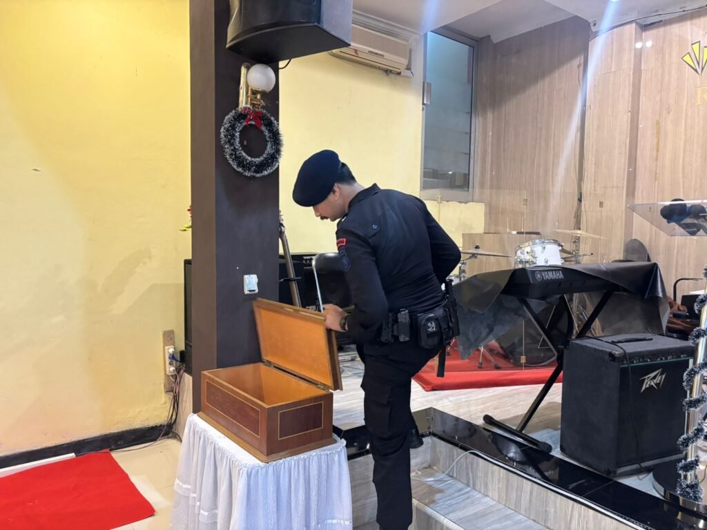 Sterilisasi mencakup pemeriksaan mendetail di setiap bagian gereja, termasuk instalasi listrik, sistem suara, atribut perayaan Natal, hingga barang bawaan yang berada di lokasi. Langkah ini dilakukan sebagai bentuk upaya preventif untuk mencegah potensi ancaman keamanan.