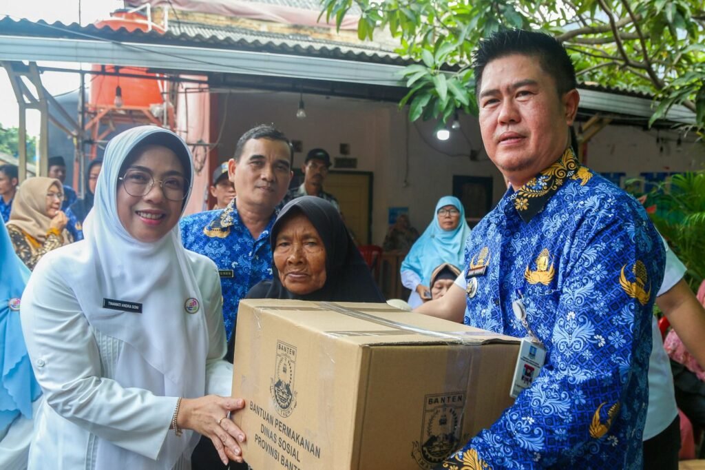 Tinawati Andra Soni juga turut menyerahkan sejumlah bantuan. Bantuan berupa sembako, kidsware, selimut, kasur, tongkat alat bantu jalan, hingga bibit cabai diberikan sebagai bentuk kepedulian.