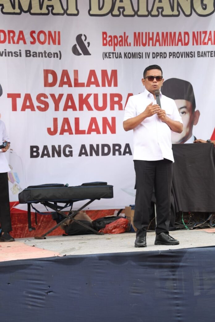 Dalam rangkaian acara peresmian tersebut, Gubernur Andra Soni juga menyerahkan bantuan sosial berupa 200 paket sembako kepada masyarakat, serta bantuan operasional untuk musala dan guru mengaji di lingkungan setempat.