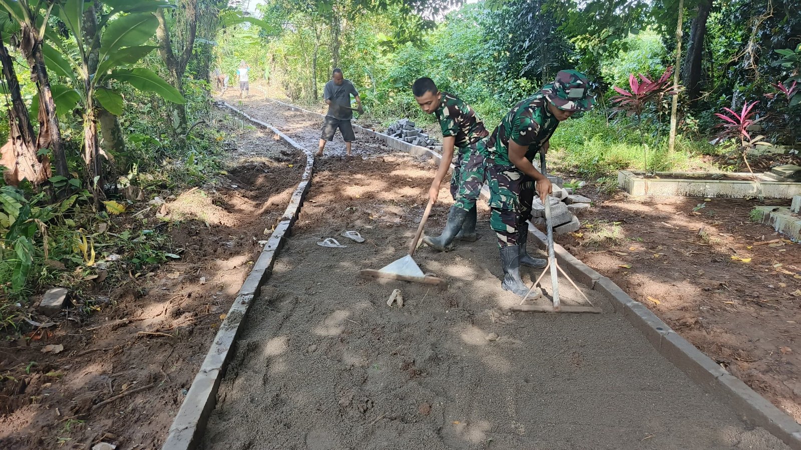 Kegiatan TMMD ini dilaksanakan secara gotong royong dan melibatkan personel TNI, Polri, serta masyarakat setempat, yang bahu-membahu dalam proses penghamparan material dan pemasangan paving block. Sinergi lintas sektor tersebut menjadi wujud nyata kebersamaan dalam membangun desa.