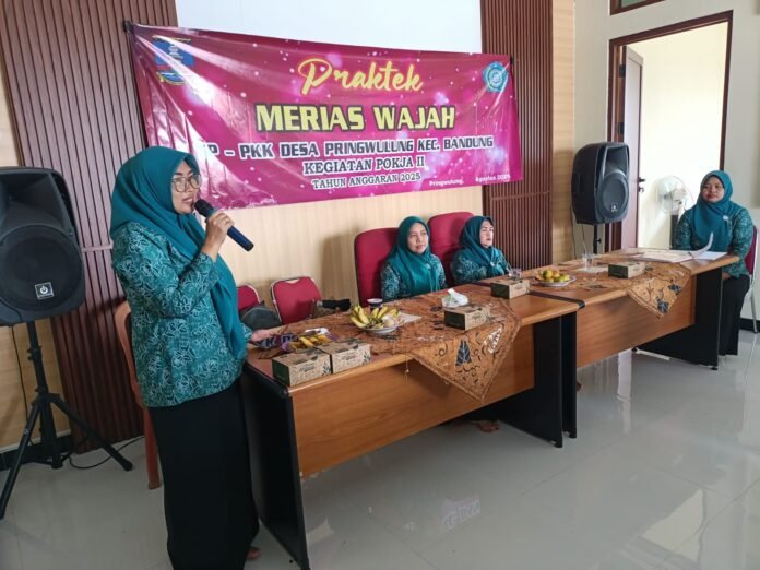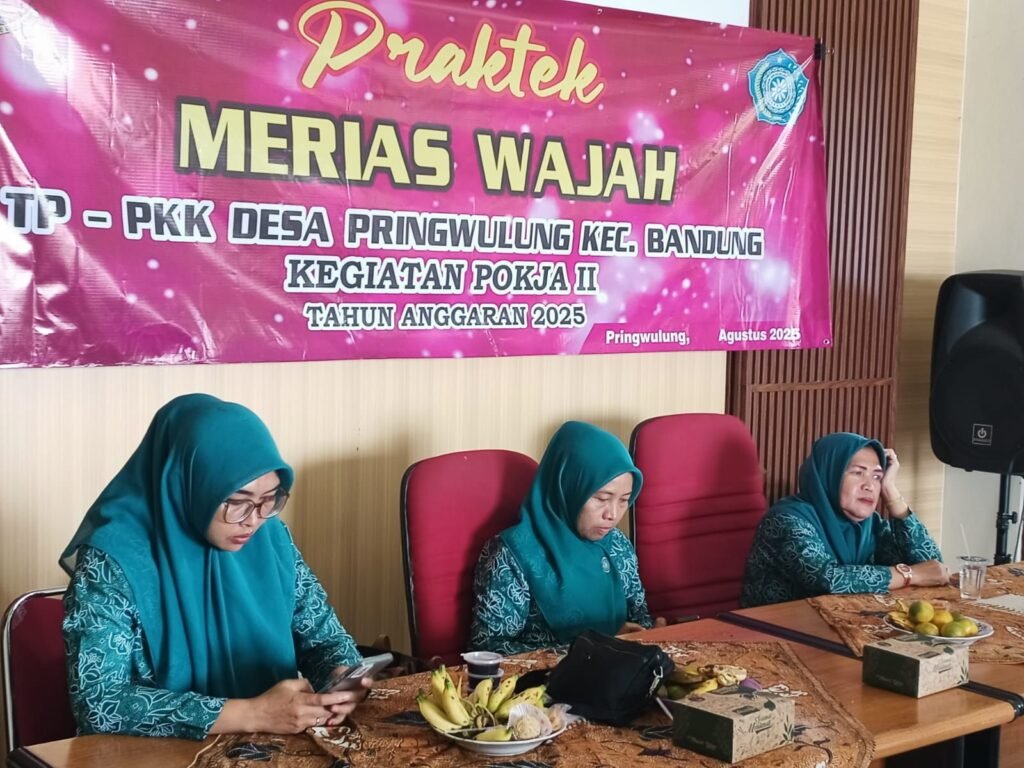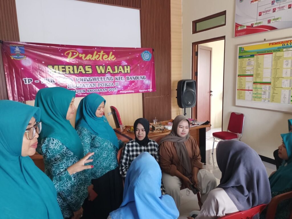 Global Rise TV ,(Serang)–Tim Penggerak Pemberdayaan dan Kesejahteraan Keluarga (TP-PKK) Desa Pringwulung, Kecamatan Bandung, Kabupaten Serang menggelar kegiatan praktek merias wajah sebagai bagian dari program Pokja dua. desa pringwulung Tahun Anggaran 2025. Selasa, (2/9/25).