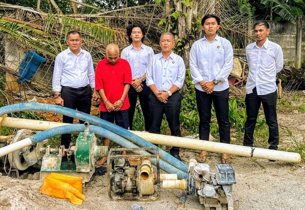 Selanjutnya para pekerja dan pemilik Tambang, di, amankan Bersama barang bukti (2) unit alat tambang timah. antara lain terdiri dari (1) unit Mesin diesel (26) PK, merk DGoldf, (1) unit pompa tanah warna hijau merk duta, (1) unit mesin robin 16 PK, (1) gulung selang monitor, (1) Buah selang ulir ukuran (3) inchi, dengan panjang kurang lebih (2) meter (1) Batang pipa paralon warna putih ukuran (4) inchi, (1) Gulung, selang warna kuning ukuran (4) inchi, (1) unit mesin diesel (7) PK, (1) unit pompa tanah merk Gmas, (1) unit Mesin robin (7) PK, (1) Buah selang ulir ukuran (25) inchi, Pungkasnya (Imron)