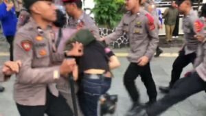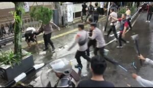 (Sukabumi) – Bentrokan antara massa dan polisi terjadi di dalam unjuk rasa penolakan Undang-Undang Tentara Nasional Indonesia (UU TNI) di depan kantor Dewan Perwakilan Rakyat Daerah (DPRD) Kota Sukabumi, Senin (24/3/2025) sore.