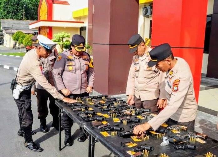 Sebanyak (55) lima puluh lima, pucuk (Senpi) baik laras panjang mau pun laras pendek, pemegang (Senpi) dinas yang dilakukan, pengecekan dan pemeriksaan, dengan sasaran yakni kelengkapan (Senpi) dinas, Amunisi yang dipinjam pakaikan, kebersihan (Senpi) dan surat pemegang senpi kelengkapan Administrasi,