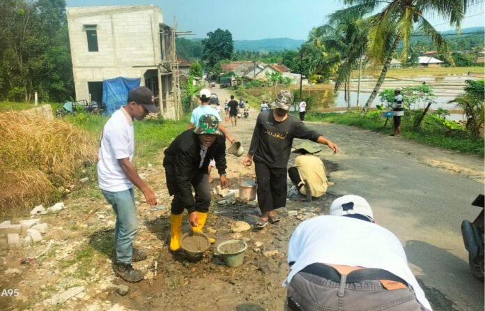 Pantauan Targetberita.co.id di lapangan, puluhan warga bersama anggota paguyuban bekerja bahu-membahu menutup lubang dengan semen, batu, dan peralatan sederhana. Kegiatan ini dilakukan semata-mata agar jalan tetap bisa dilalui, mengingat jalur tersebut sangat penting bagi warga maupun wisatawan yang hendak menuju Baduy.