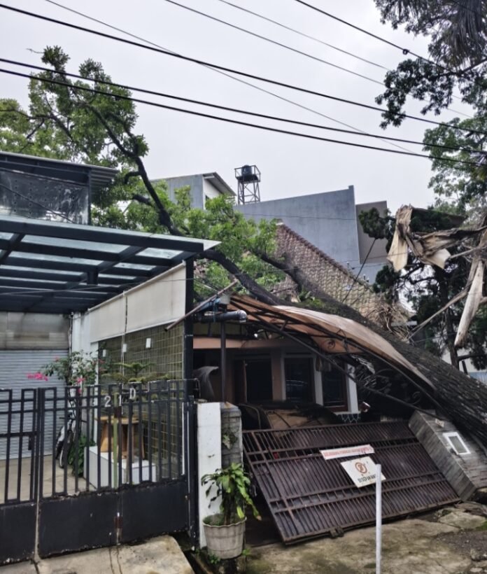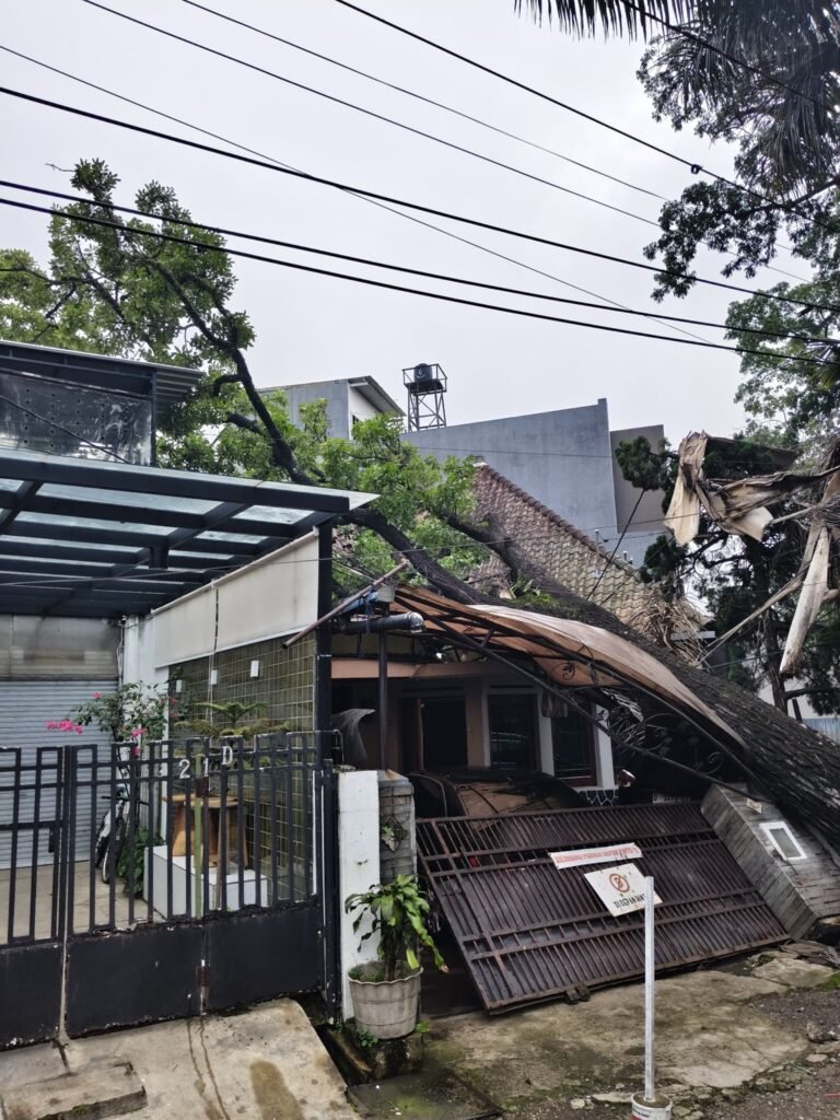 “Telah tumbang pohon Mahoni berumur lebih dari 100 tahun setinggi 20 meter yang menimpa rumah di Jalan Cihapit No. 23 Kota Bandung, Kecamatan Bandung Wetan, Kelurahan Cihapit yang mengakibatkan kerusakan berat,” ujar Bobby salah seorang warga anak pemilik rumah yang rusak di kanal Tiktok.