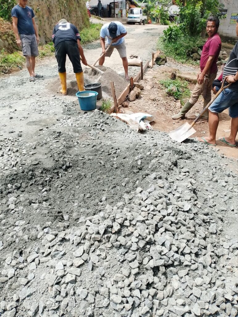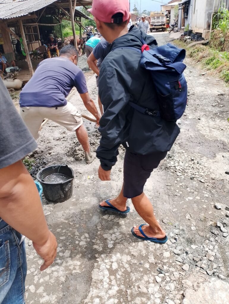 Salah satu bandar sayuran saat di konfirmasi mengatakan, “Ya, kami bergotong-royong dengan menambal jalan rusak berlubang di sekitar Kampung Ciparigi dan Bayongbong. Ini istilahnya masyarakat urunan, ada yang bawa semen, ada yang bawa material pasir dan lainnya. Kalau tidak bisa bantu tenaga, warga biasanya menyumbang dengan membawa aneka makanan-minuman,” Ucapnya.