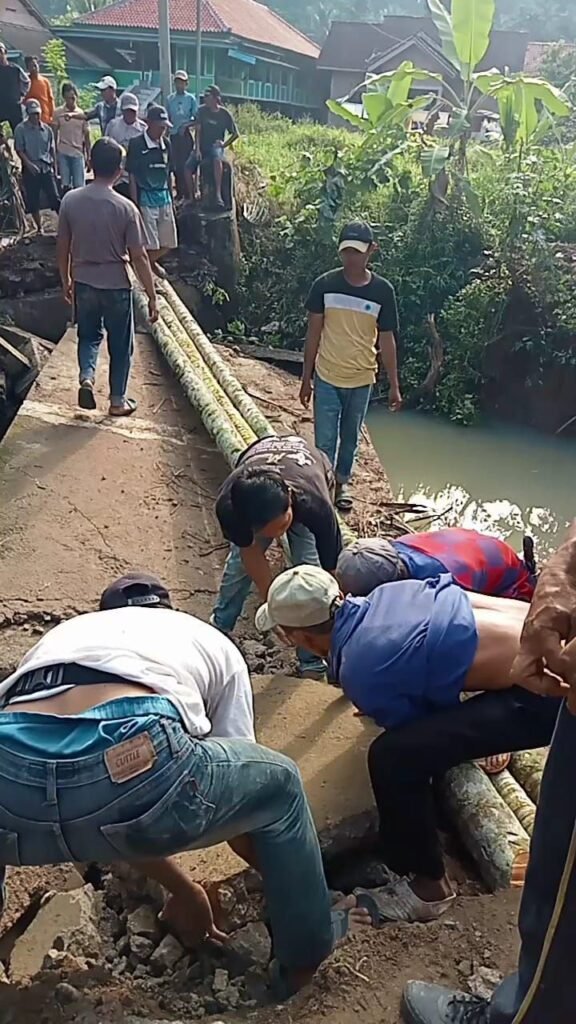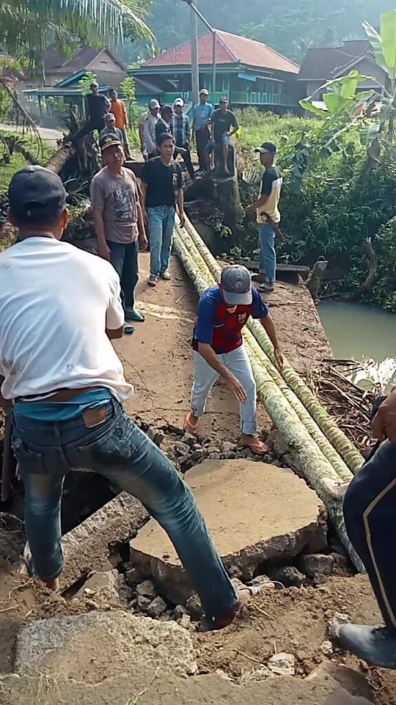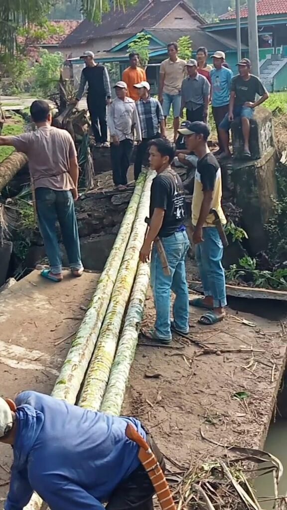 Global Rise TV (Lampung Selatan) – Terkait pasca hujan angin menerpa Desa Umbar, Kecamatan Kelumbayan, Kabupaten Tanggamus yang mengakibatan jembatan terputus minggu lalu 28 juli 2025,kini warga secara sukarela melakukan gotong royong memperbaiki jembatan yang terputus.