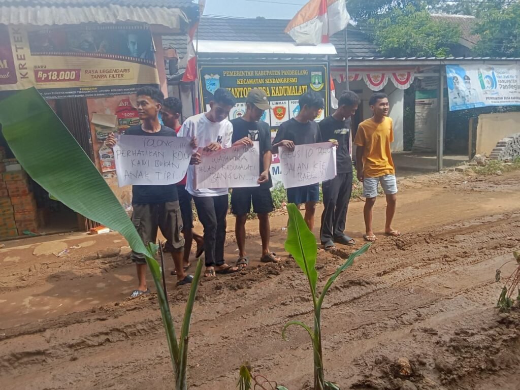 ‎Puluhan warga di Kampung Kadumalati, Desa Kadumalati, Kecamatan Sindangresmi, Kabupaten Pandeglang, Provinsi Banten, melakukan aksi protes yang unik namun sarat makna. Sebagai bentuk kekecewaan terhadap pemerintah daerah yang dinilai lamban menangani infrastruktur jalan, warga menanam pohon pisang di badan jalan poros kabupaten yang menghubungkan Kecamatan Sindangresmi dan Kecamatan Patia.