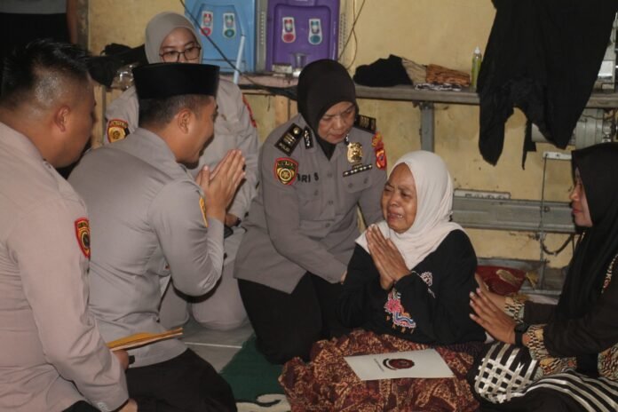 Nampak, AKBP Anom berbaur dengan warga dan keluarga, memberikan kekuatan moril serta doa tulus bagi almarhum yang dikenal memiliki dedikasi tinggi selama bertugas.